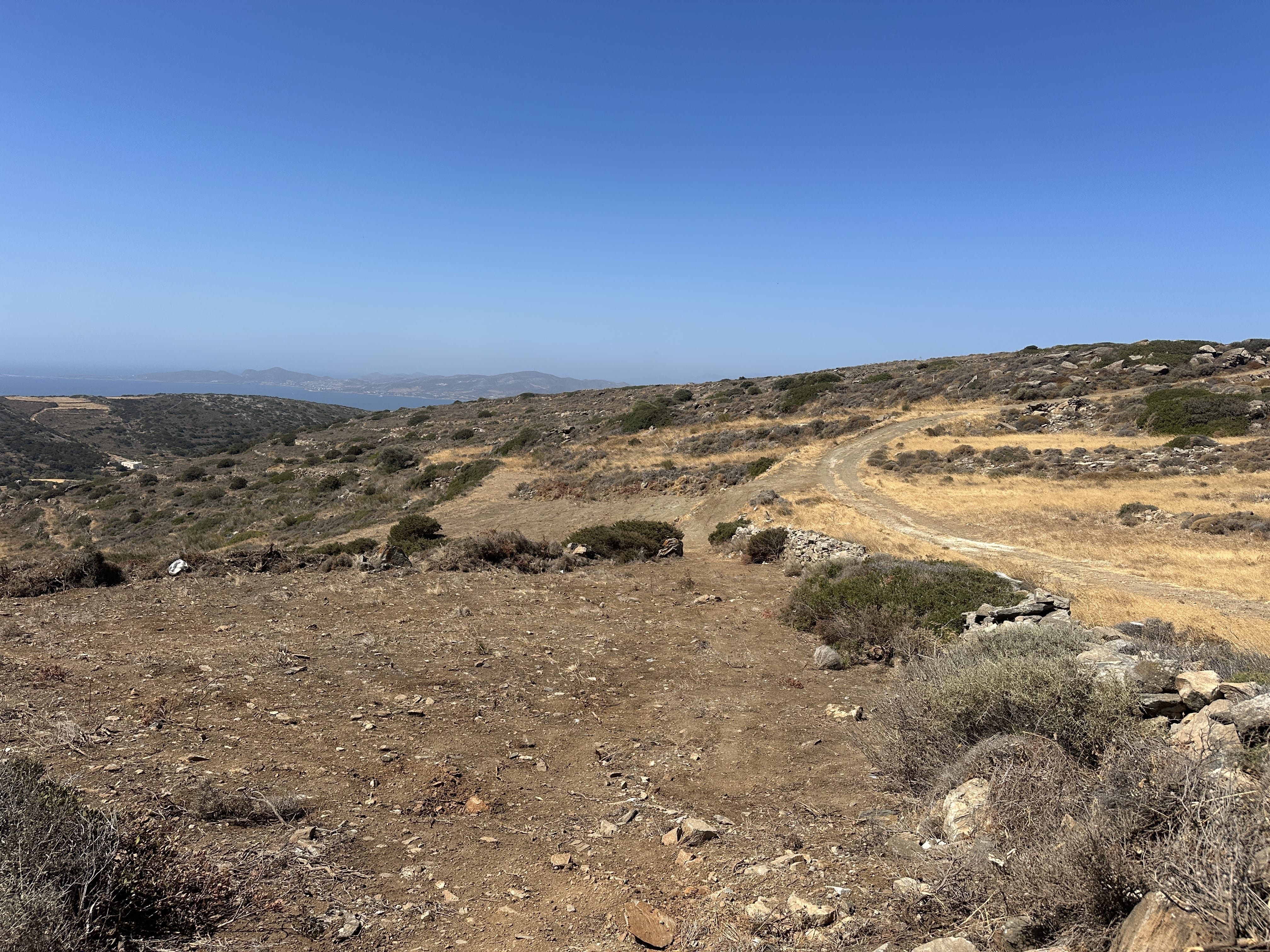 A plot of land of 4,770 sq.m. is for sale in a quiet area of Paros, Lagkada. It is located on a hill with panoramic views of the South Aegean, Antiparos and the Blue Lagoon, just five minutes from the airport, ten minutes from the port of Aliki and twenty minutes from the island's main port. The property has a building allowance of up to 200 sq.m. and a drilling permit, offering a unique opportunity for the construction of a holiday residence or investment development in a prime location.